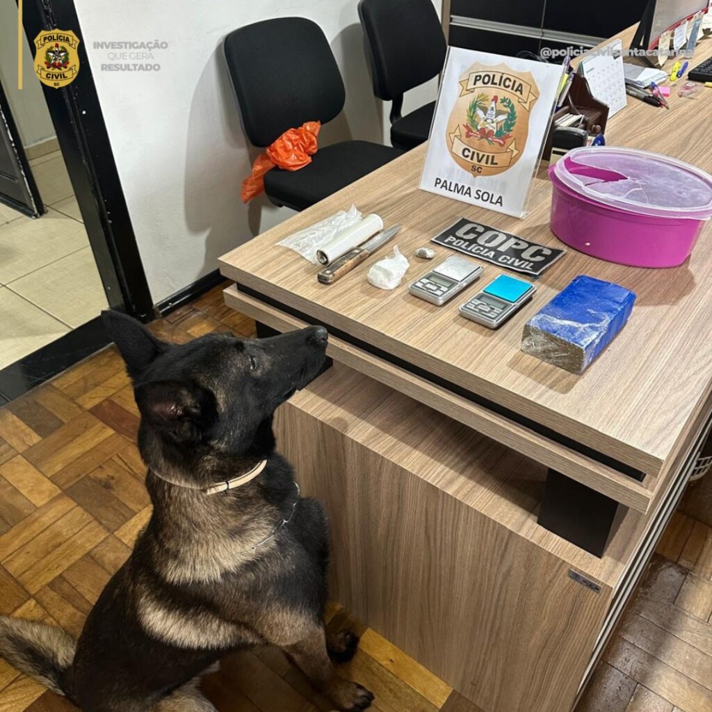 Na tarde de quarta-feira (12), a Polícia Civil de Palma Sola, no Oeste de Santa Catarina, com apoio do Canil da Policia Civil de São Miguel do Oeste e de Chapecó, de Polícias da Operação Protetor, além da Policia Militar de Palma Sola, deram cumprimento à ordem judicial que determinava a busca por drogas na residência de um casal da cidade.
