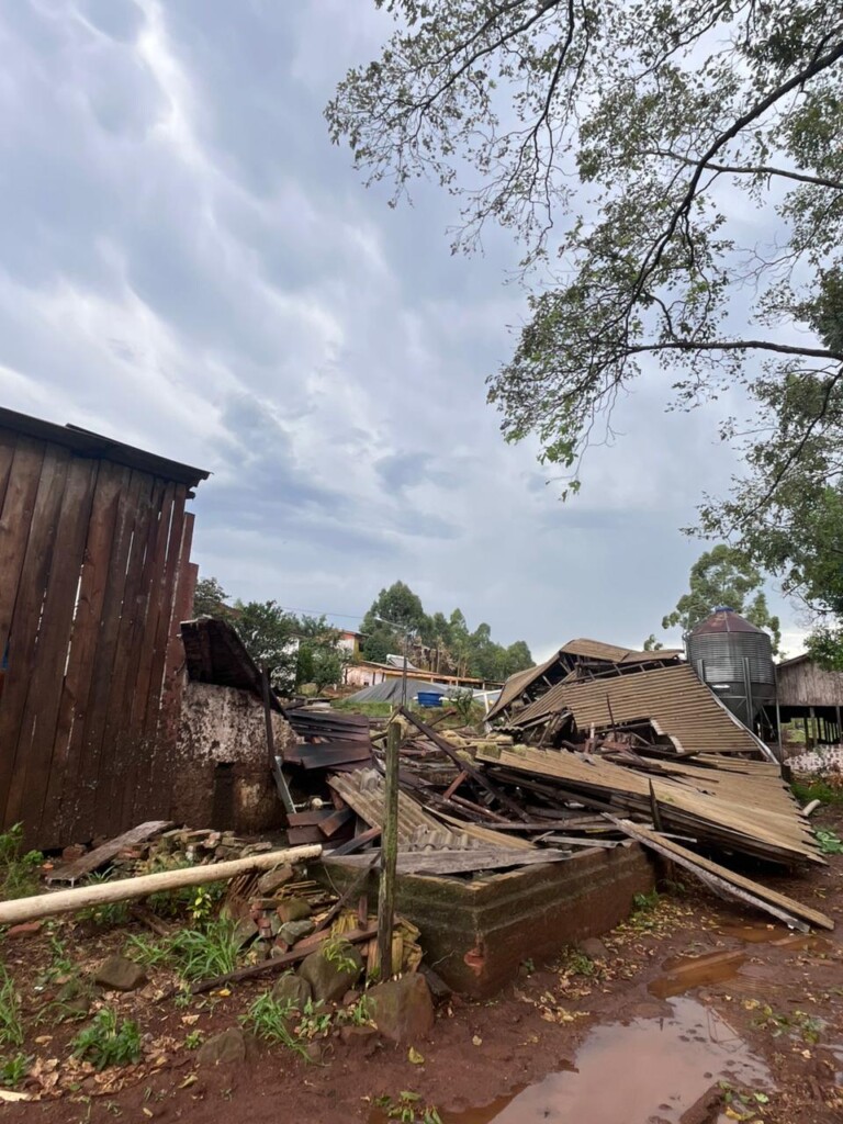 Queda de galpão prende animais e árvores bloqueiam estrada em município do Oeste de SC