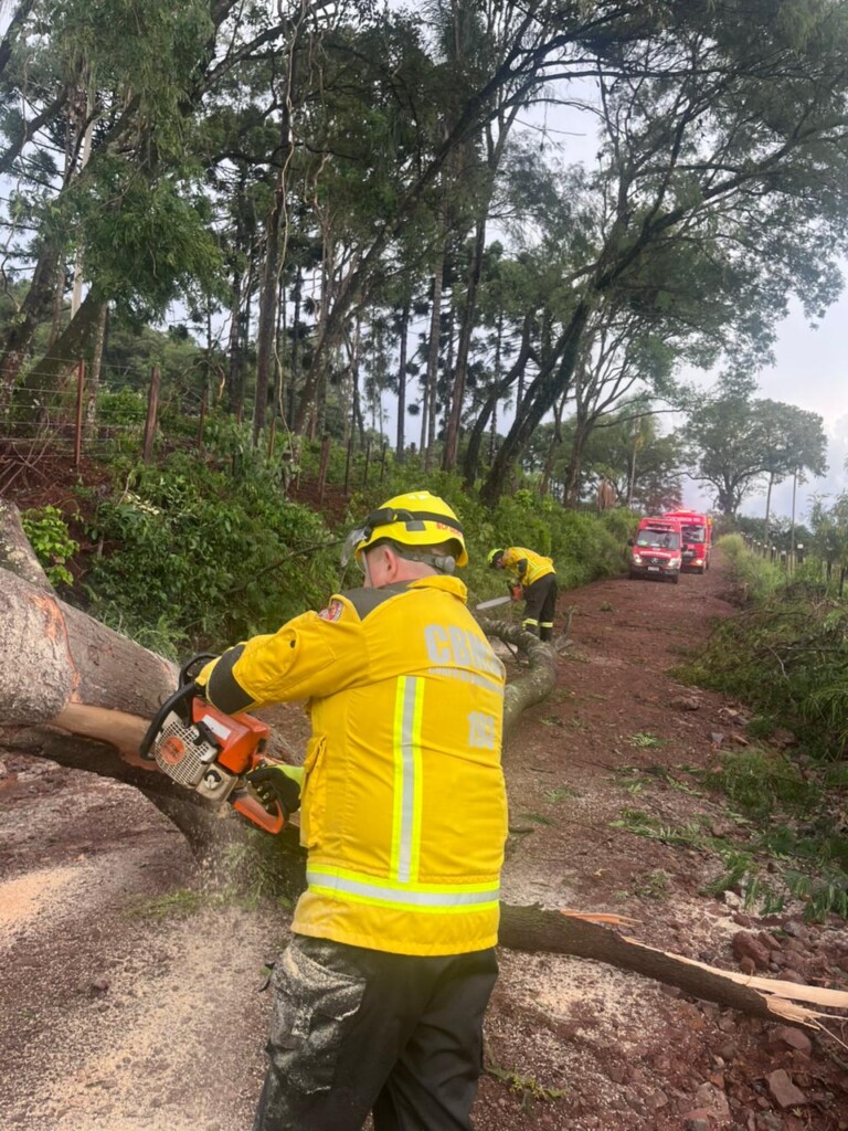 Pouco depois, às 16h40, as mesmas guarnições foram acionadas para a queda de árvores em dois pontos distintos da mesma estrada, que bloqueavam totalmente o tráfego. Com o uso de motosserras, os bombeiros cortaram as árvores e desobstruíram a via, garantindo a segurança e o fluxo de veículos na região.