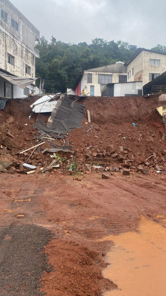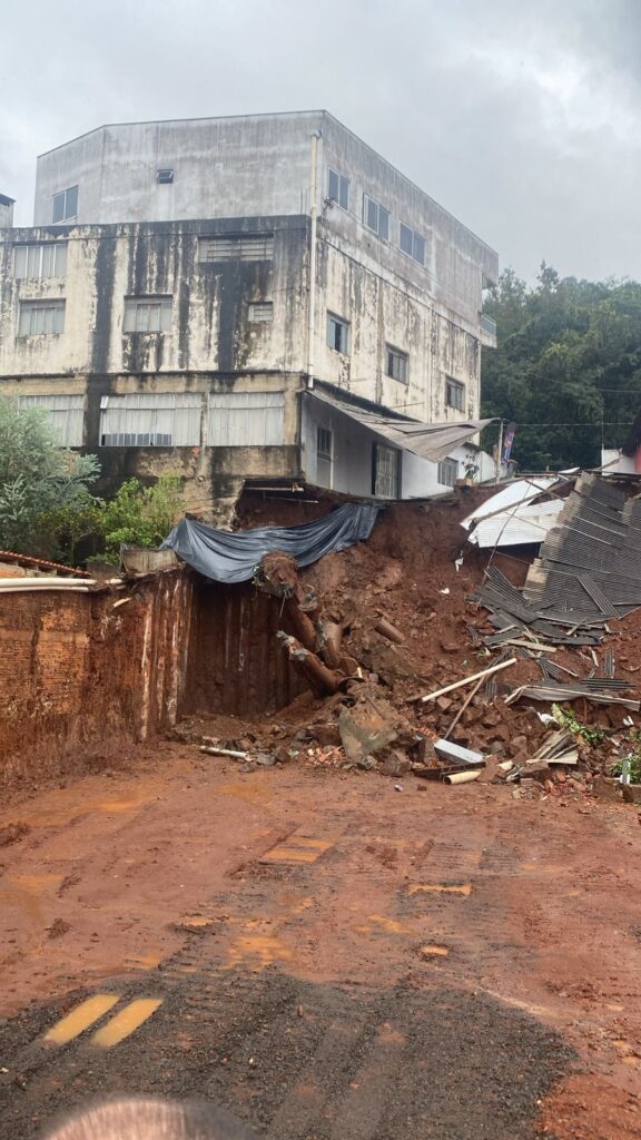 De acordo com as informações, o problema foi causado pelo cedimento parcial do terreno de sustentação, resultado de uma obra de escavação em um barranco somada ao alto volume de chuvas recentes. A instabilidade deixou a edificação em situação de risco iminente.