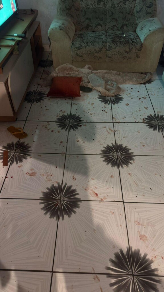 Após socorrer a mulher, a PM foi até a residência do suspeito. Ele abriu a porta em visível estado de embriaguez, confessou o crime e tentou resistir à prisão, sendo contido e algemado. Dentro da casa, os policiais encontraram marcas de sangue e apreenderam as armas brancas usadas nas agressões.