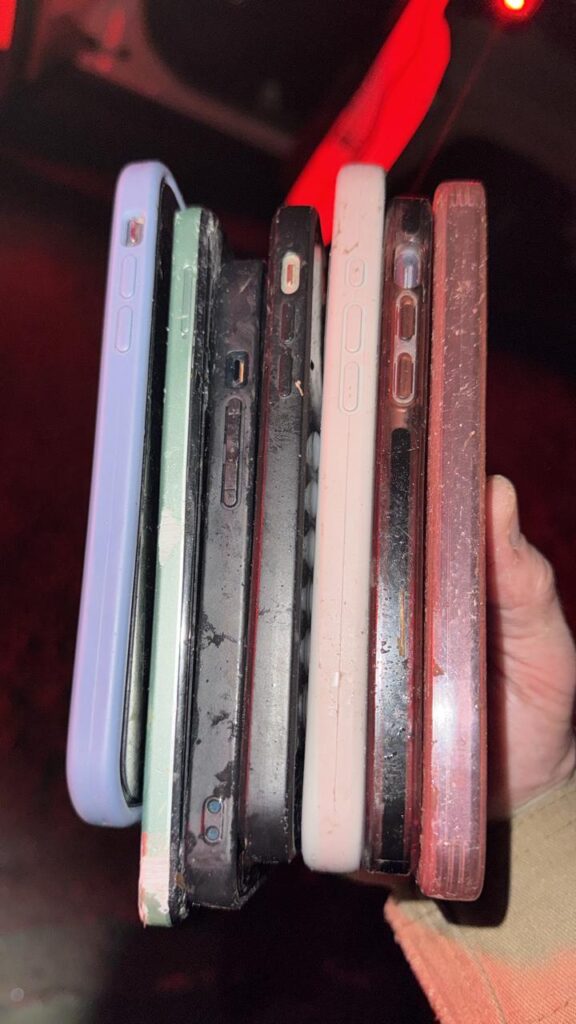 Durante a perseguição, os policiais perceberam que os ocupantes tentaram se livrar dos objetos, arremessando celulares pela janela. Sete aparelhos foram recuperados logo após a abordagem. Cinco deles já foram reconhecidos por suas vítimas.