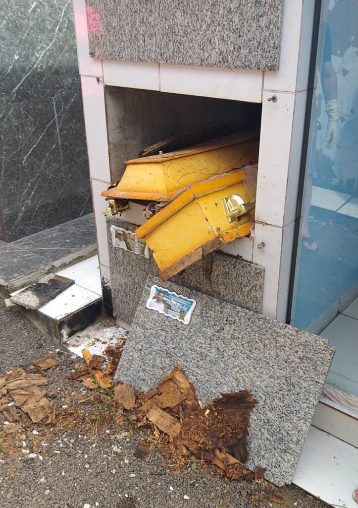 De acordo com as informações apuradas pela Oeste Mais, em um dos casos os vândalos chegaram a quebrar o caixão, que ficou parcialmente para fora da gaveta após a estrutura ter sido totalmente rompida. A cena causou indignação entre moradores que visitavam o local.