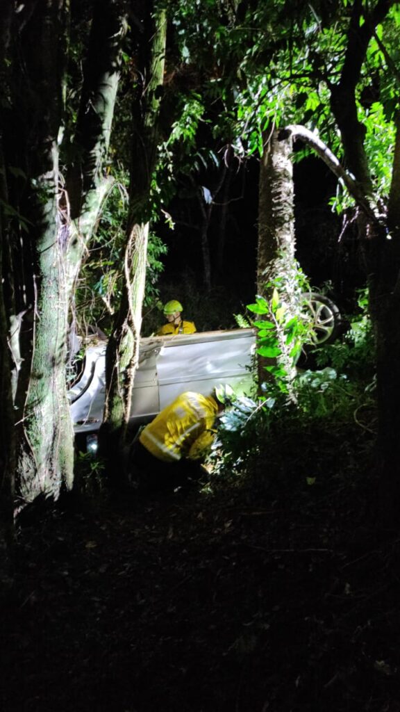As guarnições do ABTR-226 e da ASU-583, das unidades EFAPI e Centro, foram acionadas para o atendimento. No local, os bombeiros confirmaram a saída de pista seguida de capotamento, com o veículo fora da via de rolamento, próximo a árvores nativas.
