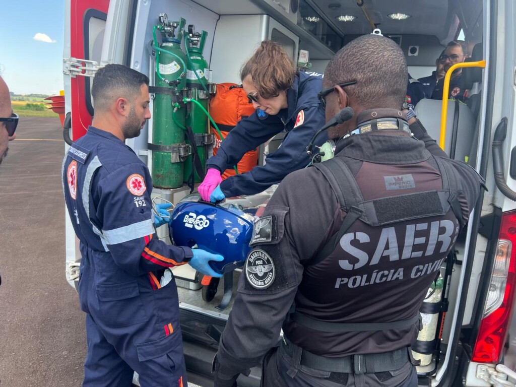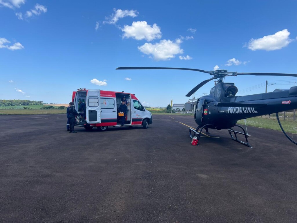 A operação foi realizada pela aeronave da Polícia Civil de Santa Catarina, tripulada por policiais do Serviço Aeropolicial de Fronteira (SAER-Fron) e por profissionais do Serviço de Atendimento Móvel de Urgência (SAMU/Aeromédico).