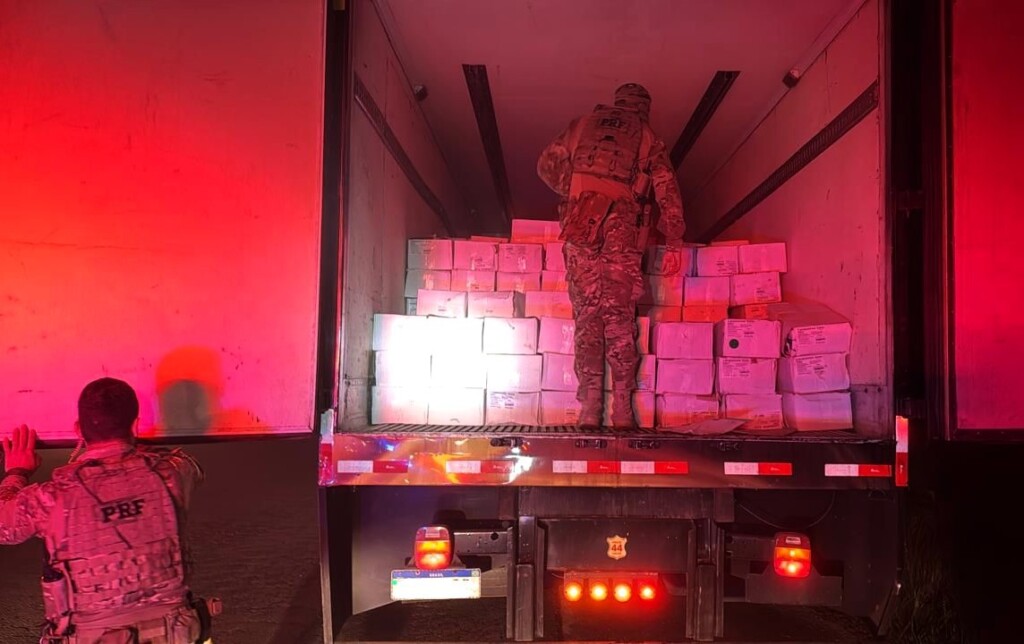 Na madrugada desta quinta-feira (09), policiais rodoviários federais apreenderam cerca de 8.000 quilos de camarão contrabandeado da Argentina na BR-153, em Água Doce. A mercadoria, de importação proibida conforme os órgãos sanitários, foi encontrada durante fiscalização a um caminhão-baú com inscrições de uma banda musical.