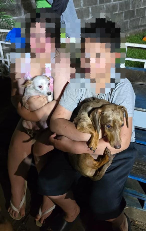 Durante o atendimento, os moradores informaram que havia animais dentro da casa. Os bombeiros iniciaram buscas e localizaram dois cães adultos com vida e sem ferimentos, um deles em meio aos escombros e outro no quintal da residência. Quatro filhotes também estavam no local.