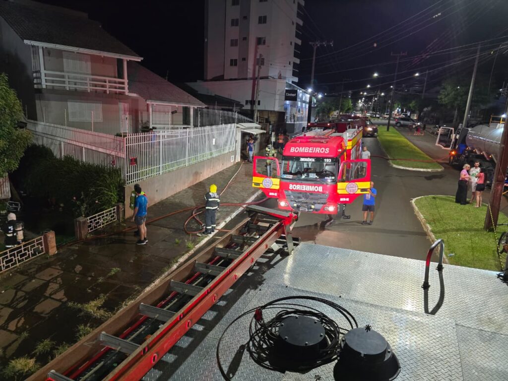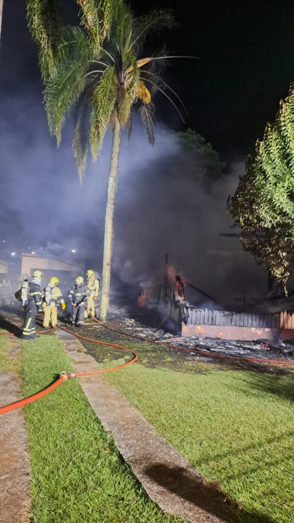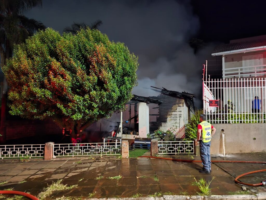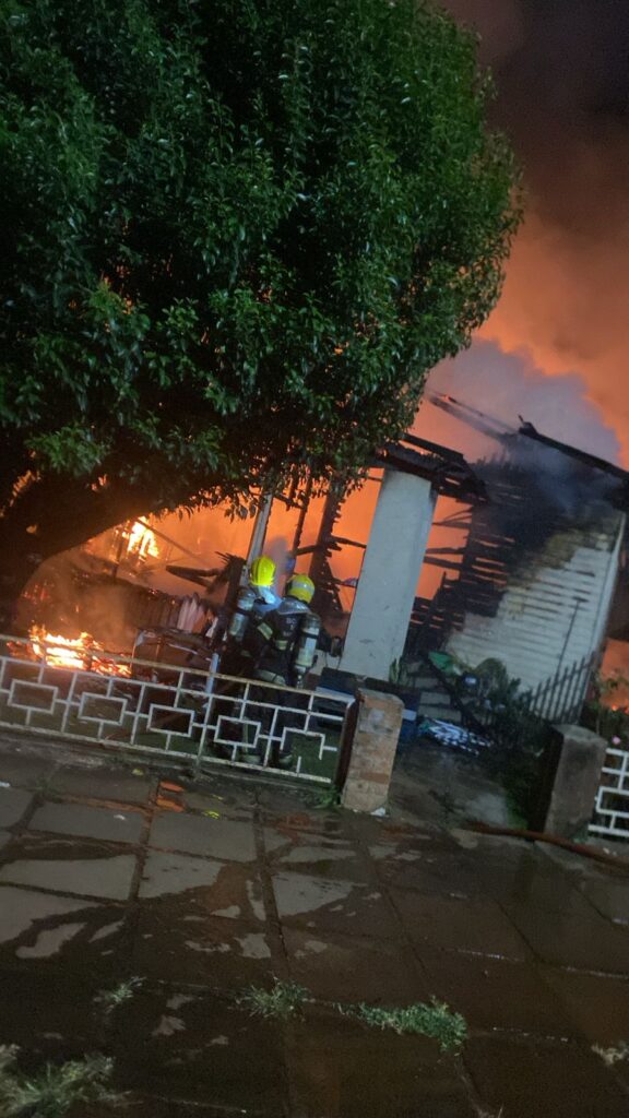 Um incêndio de grandes proporções atingiu uma residência unifamiliar na noite de terça-feira (13), por volta das 20h18, na Avenida Giacomo Lunardi, em Xaxim, no Oeste de Santa Catarina. Um homem ficou gravemente ferido ao tentar conter as chamas, enquanto uma mulher e duas crianças conseguiram sair ilesas do imóvel.