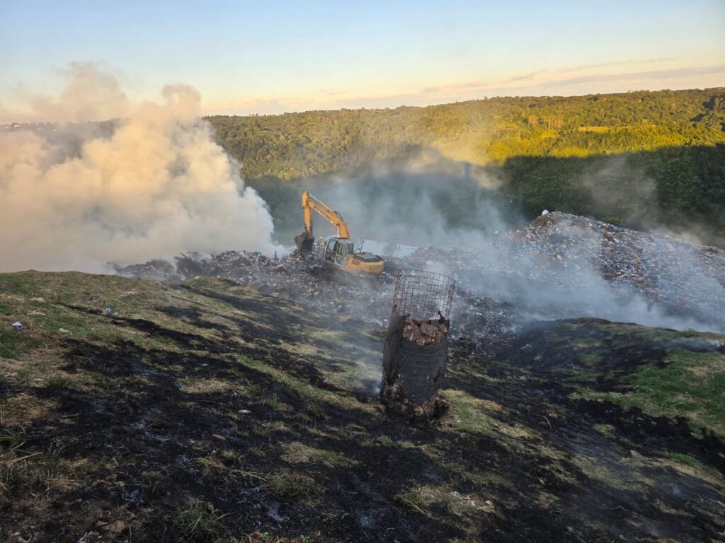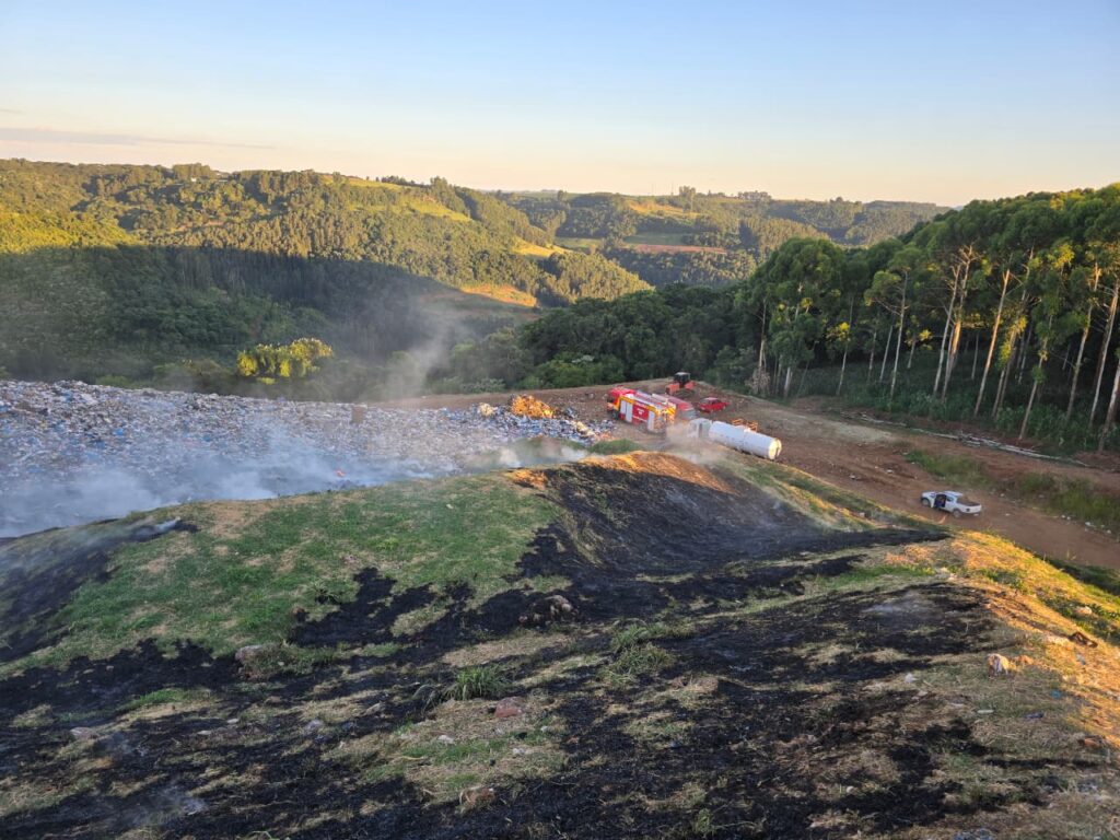 Um incêndio em aterro sanitário mobilizou o Corpo de Bombeiros Militar de Santa Catarina na tarde de domingo (25), por volta das 17h04, na Linha Pedro Guerreiro, no interior do município de Xaxim, no Oeste catarinense.