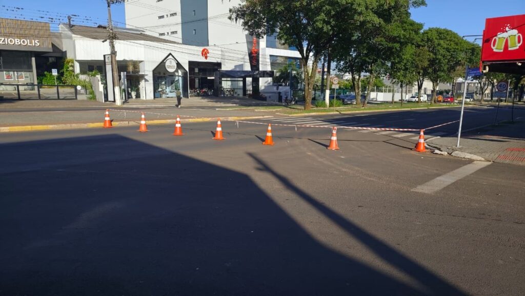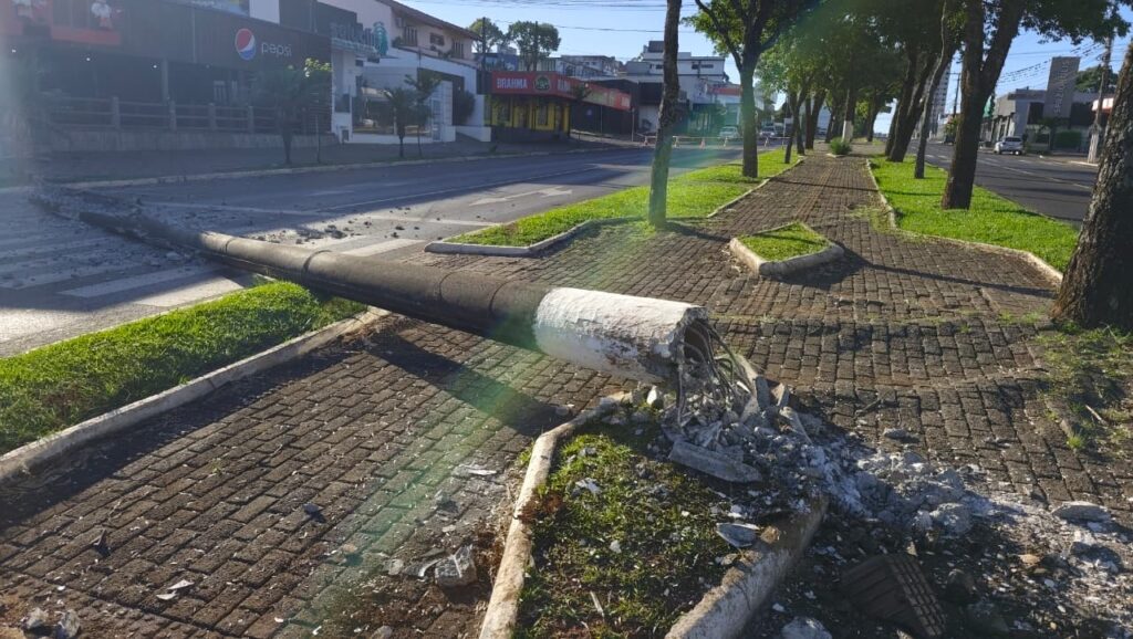 Um grave sinistro de trânsito foi registrado na madrugada desta sexta-feira (19) na Avenida Getúlio Vargas, em Chapecó, nas proximidades do Restaurante Celsão. Um veículo colidiu violentamente contra um poste de iluminação pública, que acabou sendo derrubado e interditou parcialmente a via no sentido sul/norte.