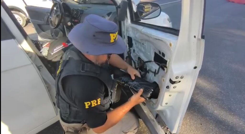 A abordagem ocorreu após os agentes pararem um Fiat Palio, com placas de São José (SC), ocupado por um casal. Durante a inspeção minuciosa do automóvel, os policiais localizaram centenas de comprimidos e ampolas de anabolizantes, além de 14 cigarros eletrônicos, ocultos em compartimentos secretos no forro das portas, na lateral do veículo e embaixo do console central.