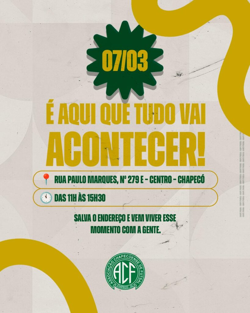 A Associação Chapecoense de Futsal realiza neste sábado (7) um mutirão de associações com valor promocional e inaugura a loja oficial do clube em Chapecó. O evento também marcará a apresentação dos uniformes da temporada 2026 para a torcida.