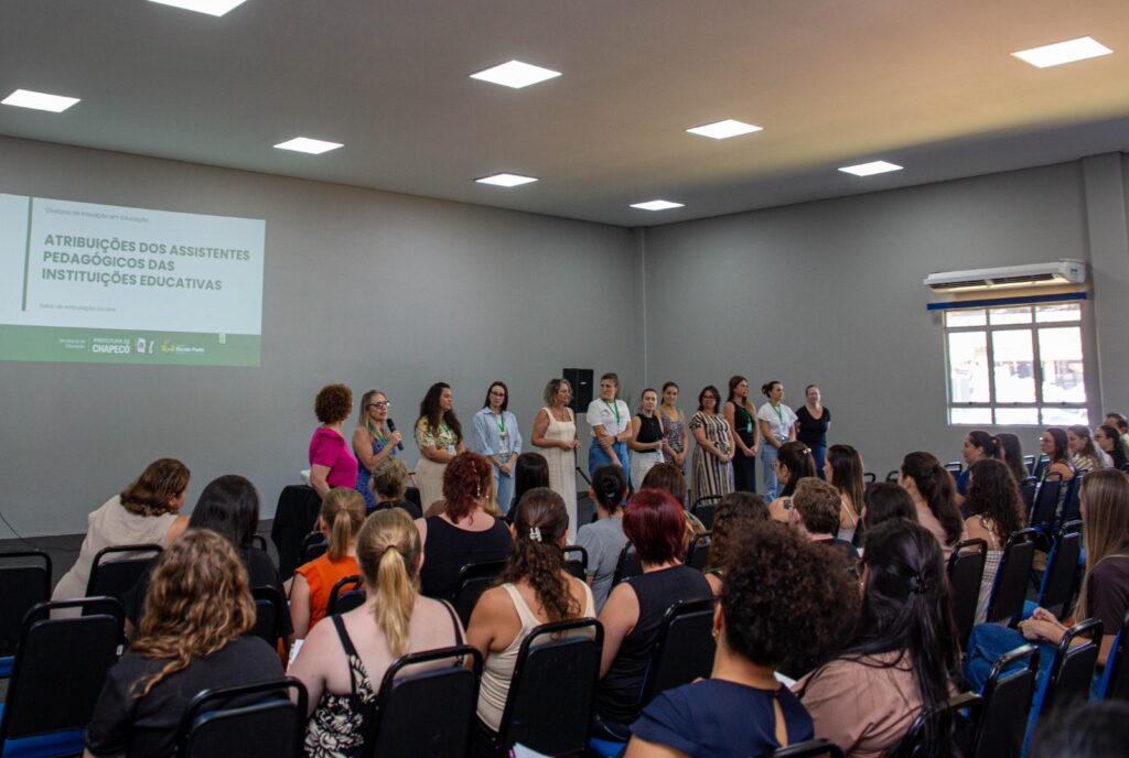 A Secretaria de Educação de Chapecó realizou, na última semana, o primeiro momento formativo do ano letivo de 2026 com assistentes pedagógicos e auxiliares técnicos de educação da rede municipal. A capacitação reuniu profissionais das escolas, centros multiúsos e centros de educação infantil, com foco na organização das atividades escolares e alinhamento dos processos de trabalho.
