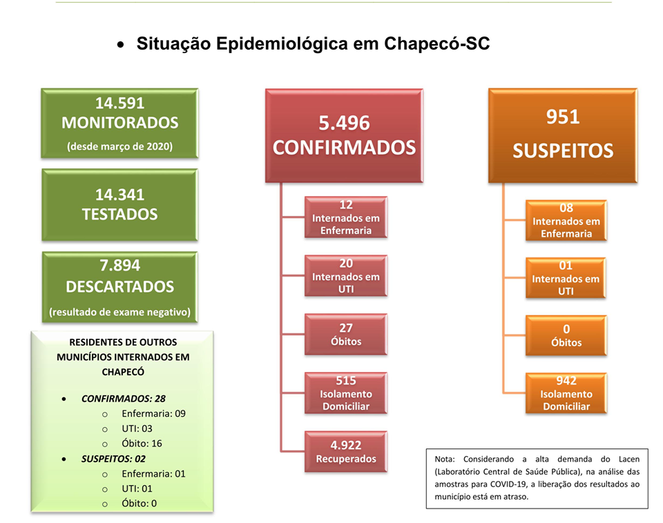 Desde o início da pandemia, Chapecó registrou 5.496 casos confirmados de coronavírus