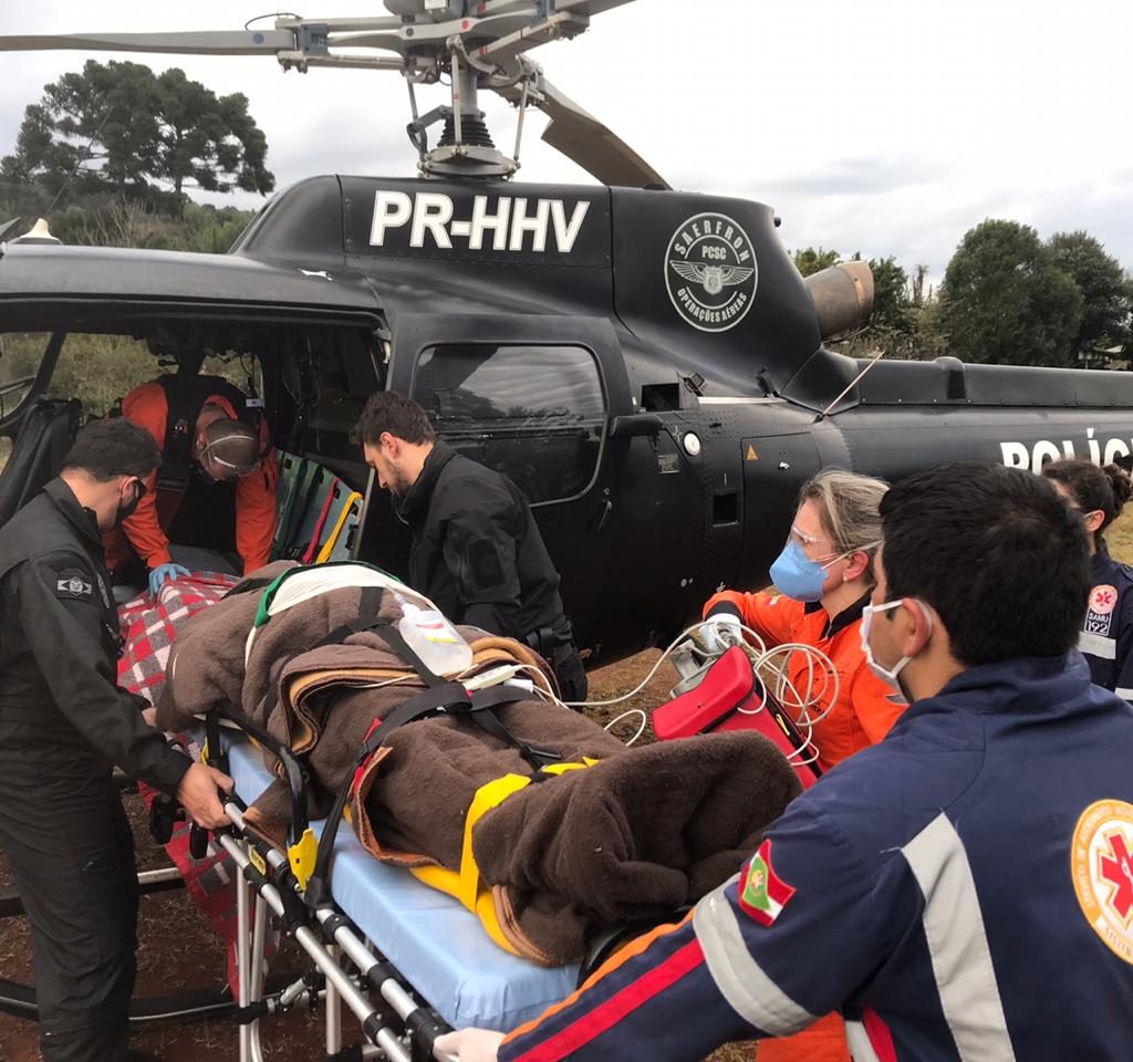 Ele foi estabilizado e conduzido ao Hospital Regional do Oeste (HRO), em Chapecó, para tratamento especializado.