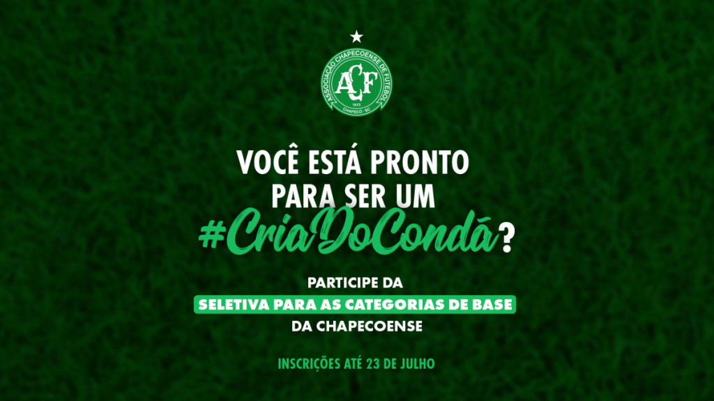 A Chapecoense vai fazer uma seleção para novos jogadores que buscam vaga nas categorias de base do clube. O “peneirão” terá como foco atletas nascidos entre 2004 e 2007, que possam atuar nas categorias Sub-14, Sub-15, Sub-16 e Sub-17 e acontecerá até o dia 30 de julho, nos campos da Unoesc, em Chapecó (SC).