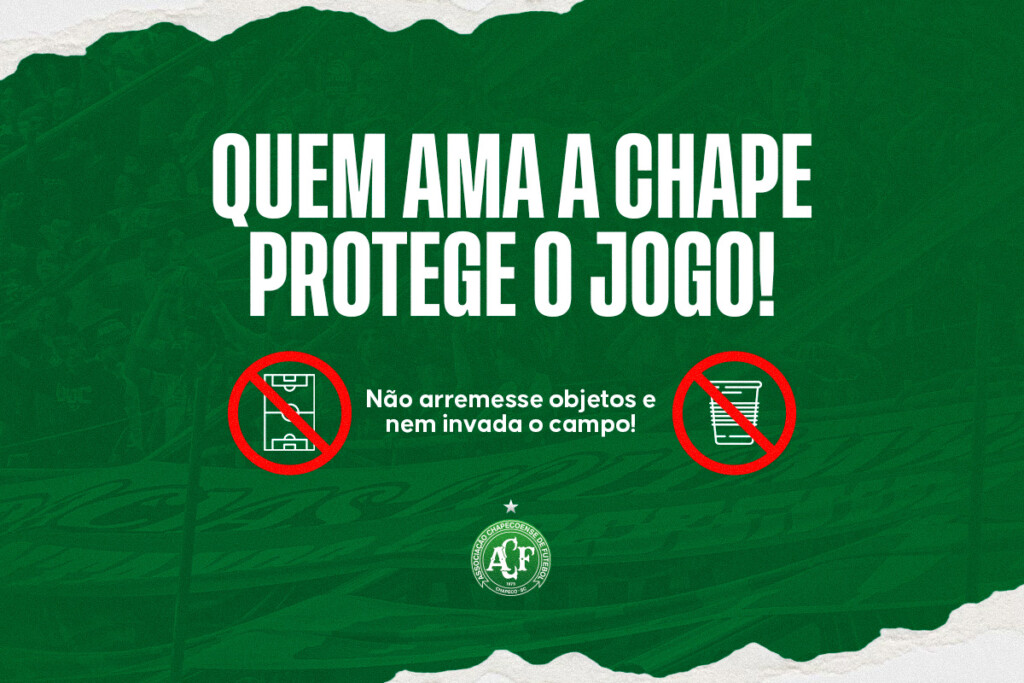 A Associação Chapecoense de Futebol orienta seus torcedores sobre os riscos e penalidades decorrentes do arremesso de objetos e da invasão do gramado durante partidas na Arena Condá. O clube tem sido notificado e penalizado pelos órgãos competentes em razão dessas ocorrências.