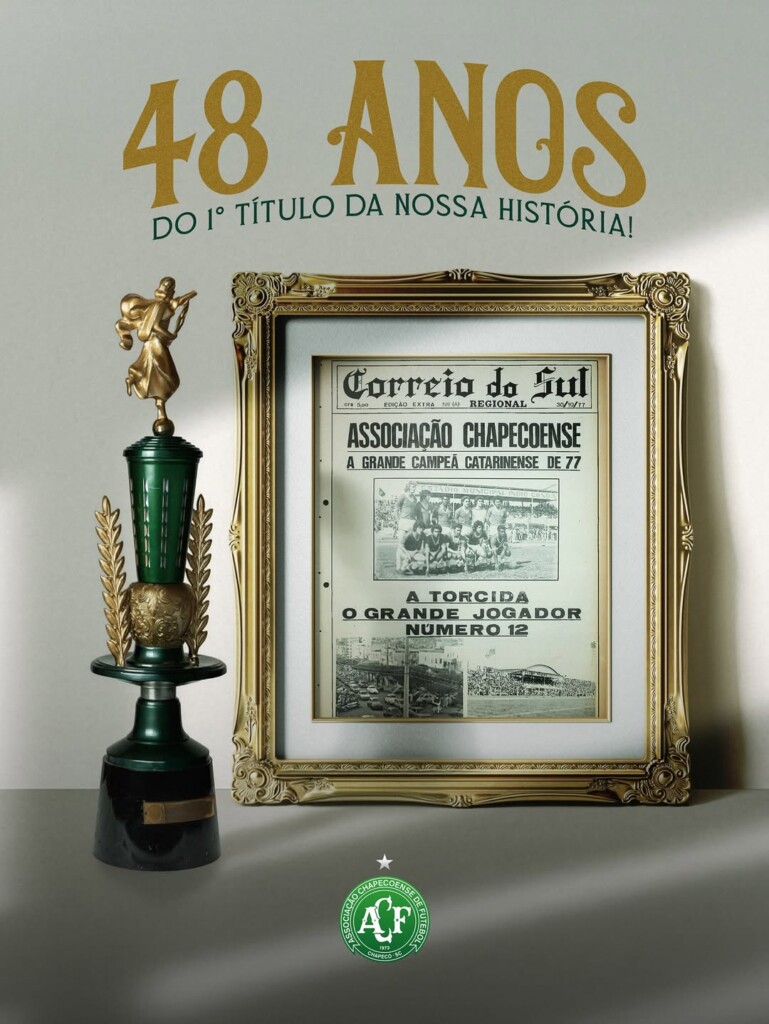 Há exatos 48 anos, a Chapecoense conquistava o primeiro título de sua história: o Campeonato Catarinense de 1977. O feito ocorreu no antigo Estádio Regional Índio Condá, apenas quatro anos após a fundação do clube, e marcou o início de uma trajetória vitoriosa no futebol de Santa Catarina.