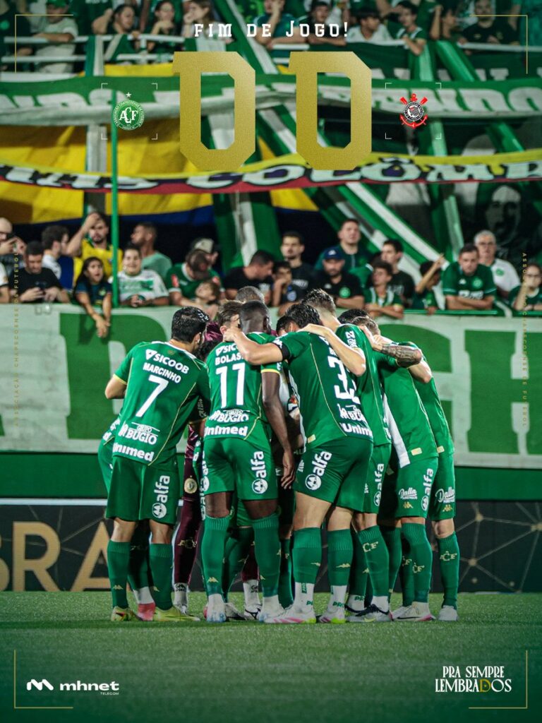 Com o empate, a Chapecoense chega a sete pontos e permanece na 14ª colocação, ainda próxima da zona de rebaixamento. Já o Corinthians soma nove pontos e ocupa a nona posição, desempenho considerado abaixo das expectativas.