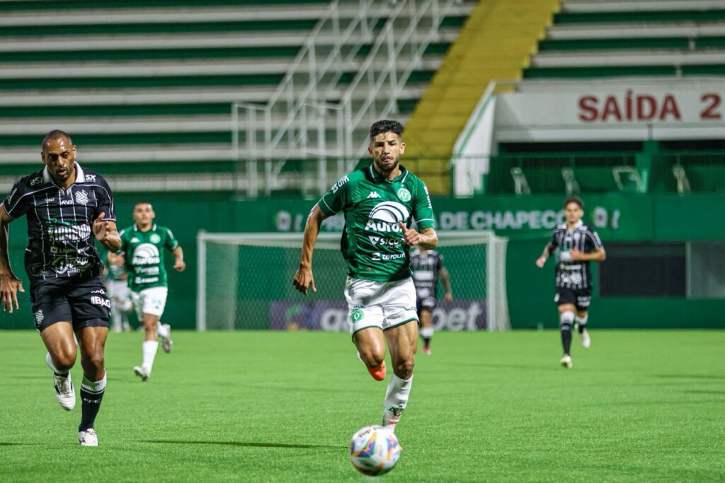 O empate da Chape aconteceu ainda no primeiro tempo. Aos 32′, Rubens recebeu o passe de Cadu, arrumou para a perna esquerda e com uma bela finalização forte, empatou o jogo em Chapecó.