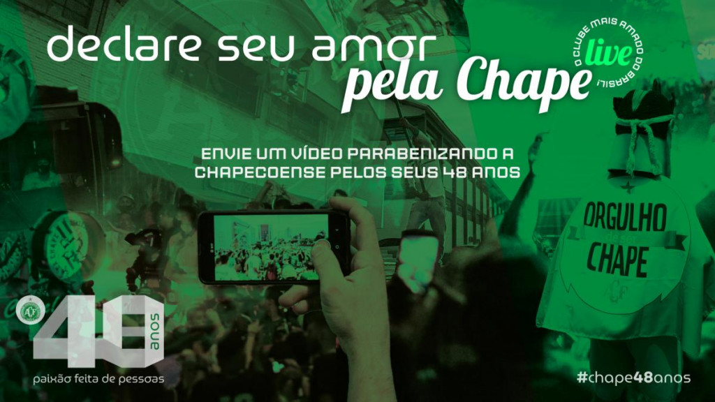 No próximo dia 10 de maio, a Associação Chapecoense de Futebol, através dos seus Departamentos de Marketing e Comunicação, realizará uma live especial em comemoração ao seu aniversário de 48 anos. O evento também contará com a apresentação dos novos uniformes do clube para a temporada 2021 e com uma série de conteúdos especiais.