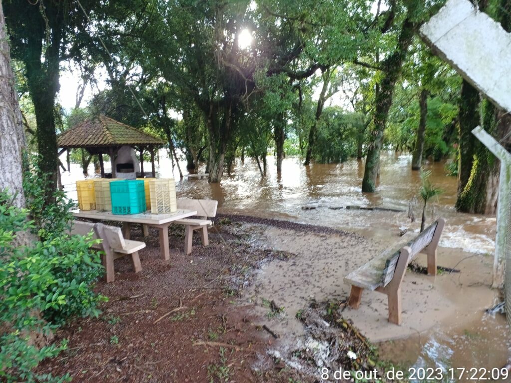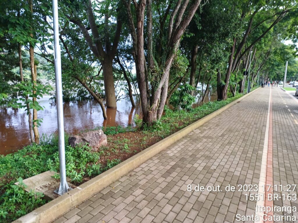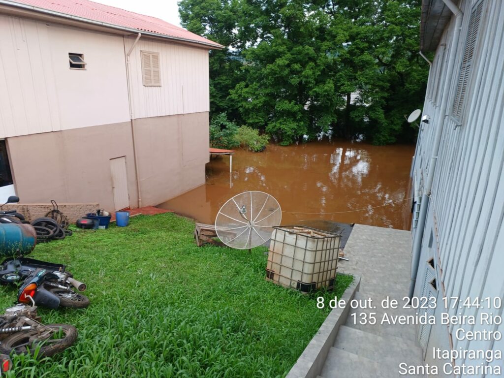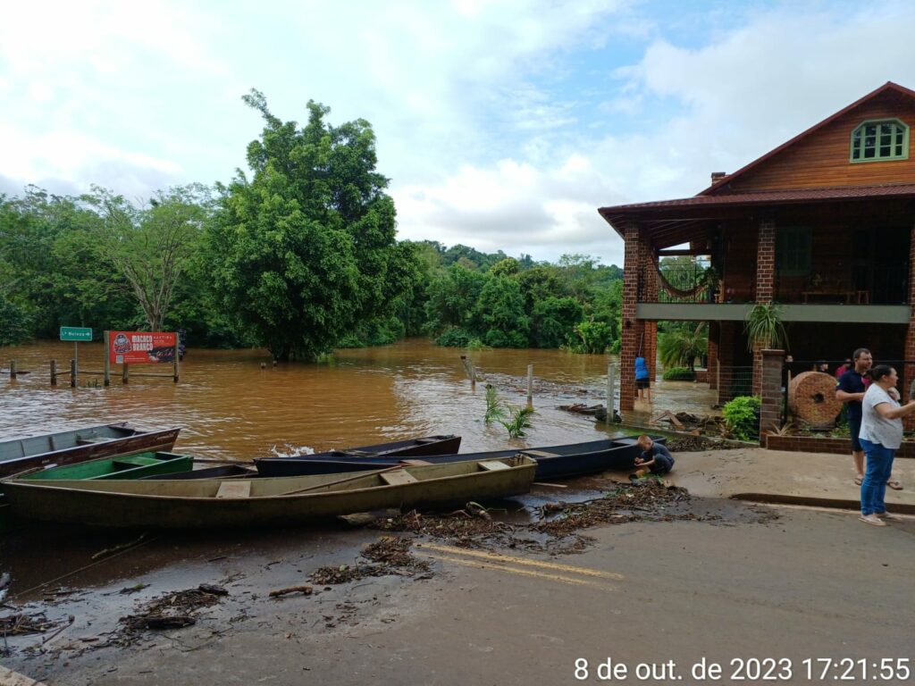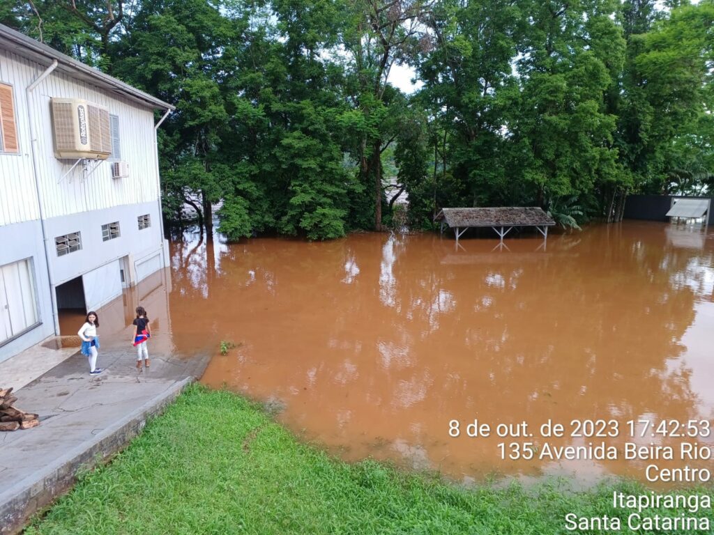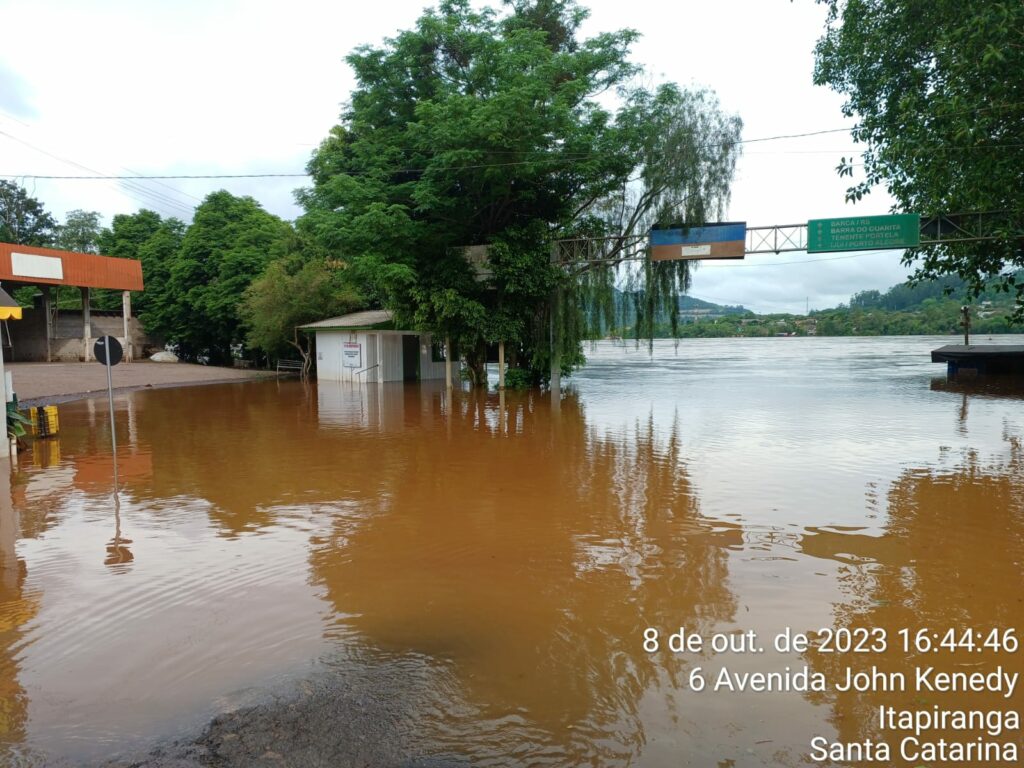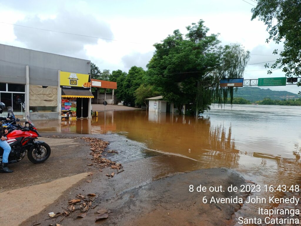 As águas do rio atingiram 10 edificações comerciais e 11 residências. Além dos registros em Itapiranga, a enchente do Uruguai atingiu o balneário de Ilha Redonda, em Palmitos (SC).