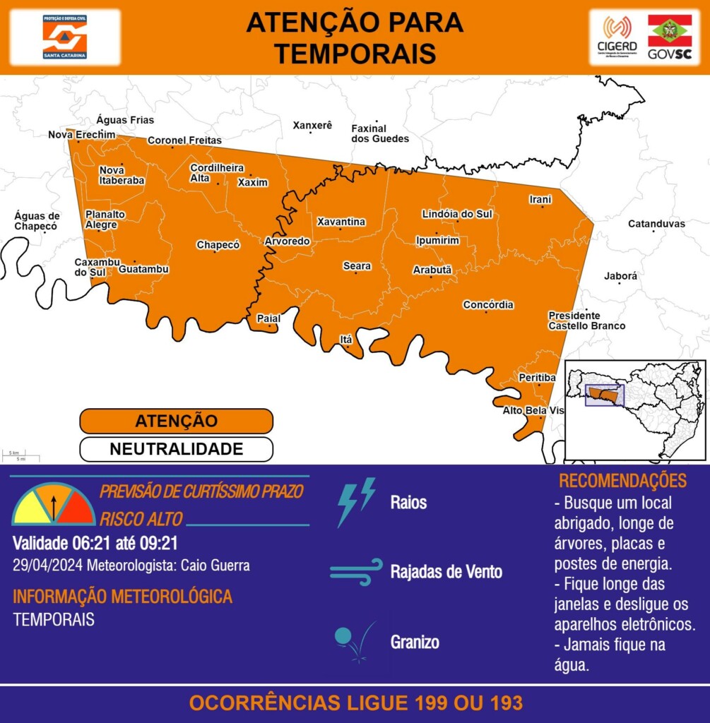 InícioTEMPOAlerta: Temporais para o Oeste de SC na manhã desta segunda-feira