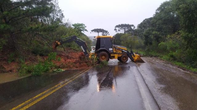 Os bombeiros se deslocaram para atender uma ocorrência de queda de árvore na BR-282, próximo ao km 459. Houve uma queda de barreira com interdição parcial da no sentido Ponte Serrada a Irani.
