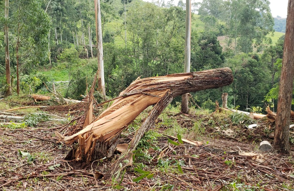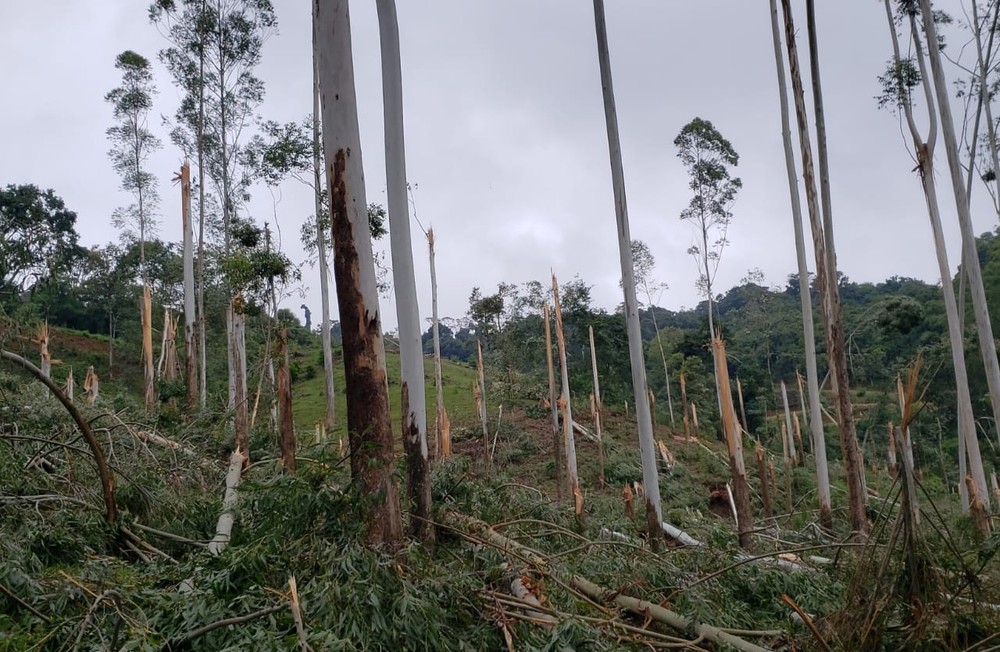 A Defesa Civil concluiu a análise técnica meteorológica referente aos temporais que atingiram o município de Quilombo, no Oeste Catarinense, na segunda-feira (28). O temporal que causou detalhamento e quedas de árvores, foi registrado por volta das 16h. Em vídeos divulgados nas redes sociais, plantas aparecem partidas ao meio, como se tivessem sido retorcidas. O estudo apontou que não se tratou de um tornado e sim de uma microexplosão com ventos de até 108 km/h.