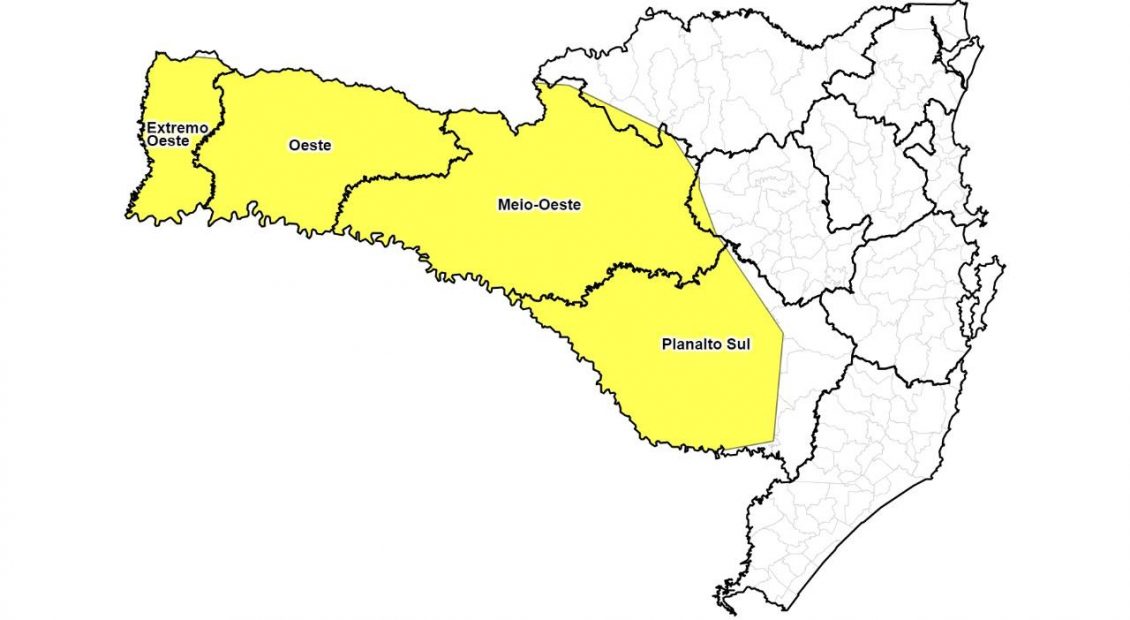 A Defesa Civil de Santa Catarina fez um alerta para temporais no Estado na terça-feira (9). Conforme o Órgão Estadual, estão previstas para as regiões Extremo Oeste, Oeste, Meio Oeste e Planalto Sul pancadas de chuva de intensidade moderada e forte, acompanhada de raios, rajadas de vento e eventual queda de granizo.
