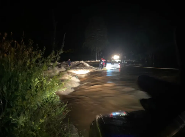 Duas pessoas foram resgatadas na madrugada deste domingo (27) após ficarem ilhadas dentro de um carro ao tentarem atravessar uma ponte em Urubici, na Serra. Segundo o Corpo de Bombeiros, o casal chegou a sair do veículo e esperou pelos socorristas agarrado a uma cerca com medo de ser arrastado pela correnteza.