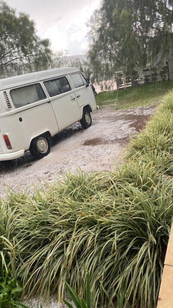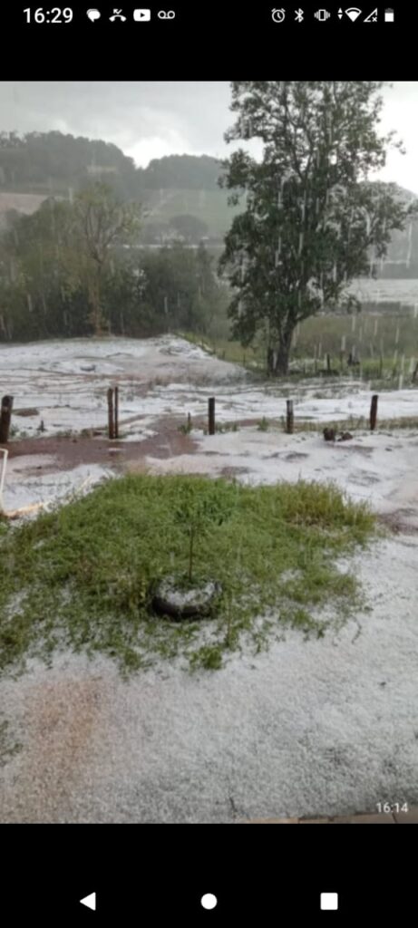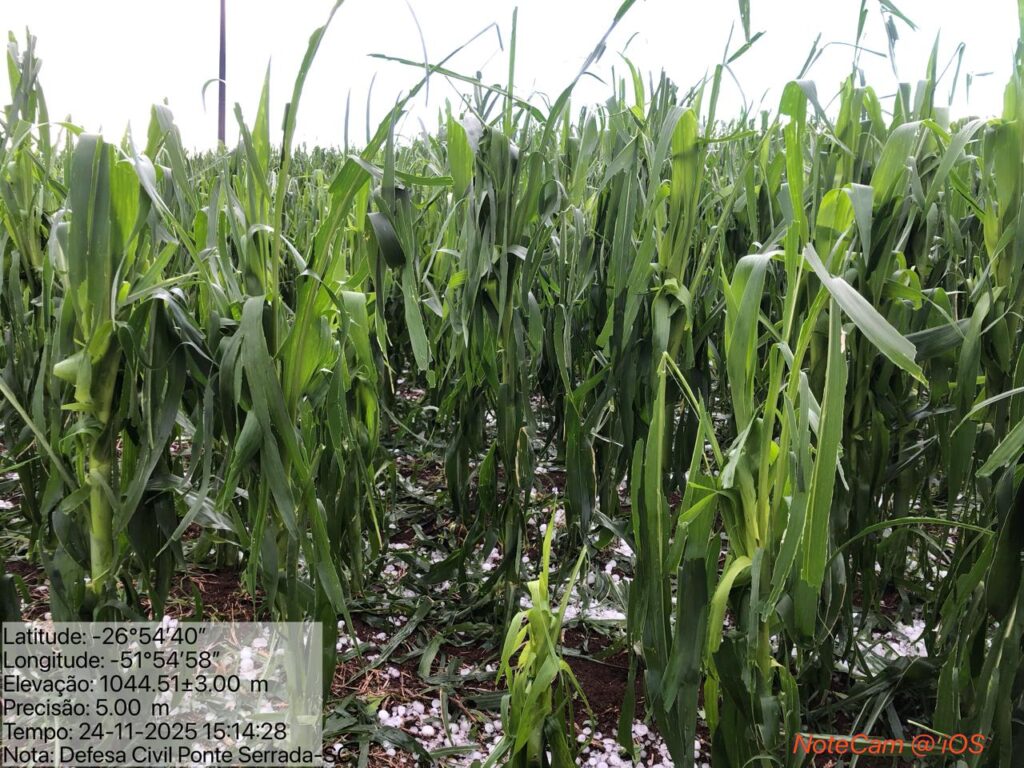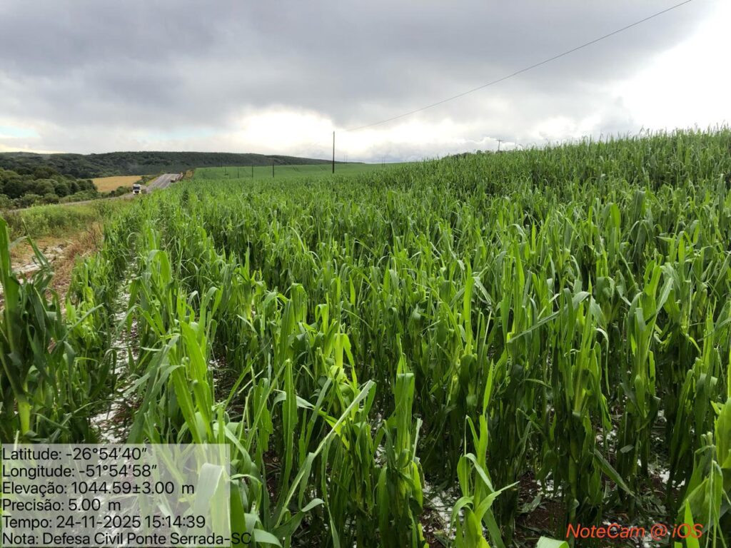Em Ponte Serrada, porém, houve registro de perda localizada em áreas de plantação de milho na região interiorana, afetadas pelo impacto do granizo.