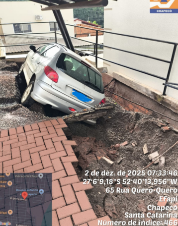 Uma precipitação intensa de 32 mm em um curto intervalo de tempo causou diversos danos estruturais na região da Efapi, em Chapecó, no início da manhã desta terça-feira (2). A Diretoria Municipal de Proteção e Defesa Civil foi acionada às 5h33 e mobilizou equipes para atender ocorrências de deslizamentos, rupturas de muros, afundamento de solo e alagamentos. Não houve vítimas.