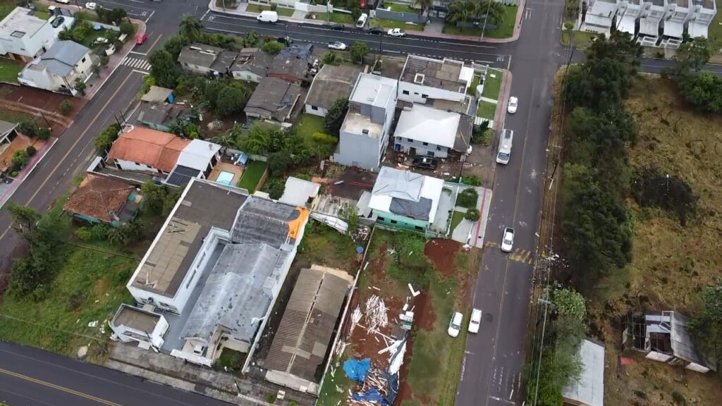 Em Faxinal dos Guedes, uma casa foi totalmente destelhada, deixando duas pessoas desalojadas. O município ativou Gabinete de Crise para coordenar as ações de resposta e limpeza.
