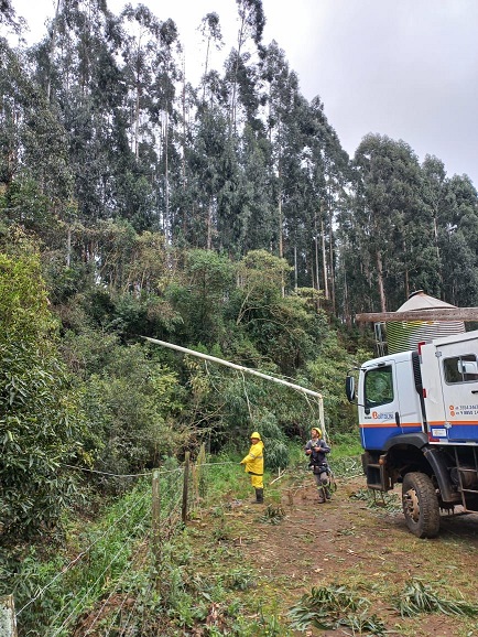 Na área urbana da cidade, segundo informou o Gerente, a energia já foi reestabelecida, já na área rural, os trabalhos da companhia seguem. André explica que a passagem do ciclone resultou na derrubada de árvores e deslizamentos de terra, que dificultam o acesso e consequentemente o trabalho das equipes.