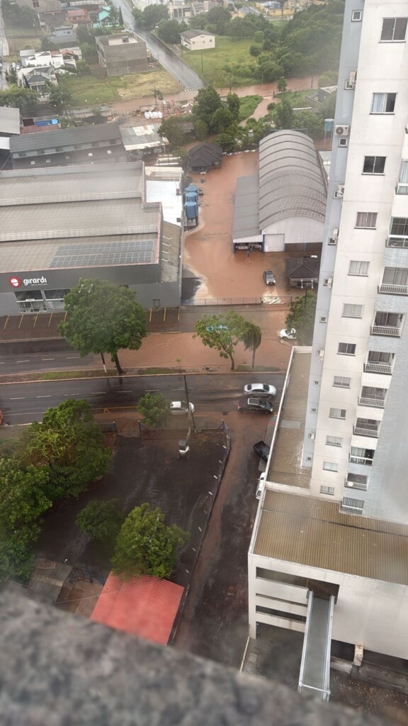 A forte chuva que atingiu Chapecó no fim da tarde desta quinta-feira (29) provocou alagamentos em diversos pontos da cidade, causando transtornos no trânsito e atendimentos de emergência. Os registros ocorreram principalmente na Rua 14 de Agosto com a Rua Japão, no bairro Passo dos Fortes, na Avenida São Pedro, no bairro São Cristóvão, além de pontos nos bairros Efapi e Alvorada.