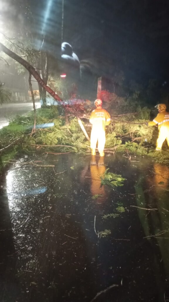 Na madrugada deste sábado, por volta das 1h58, a OBM de Xaxim foi acionada para atendimento de queda de árvores na via que liga Xaxim ao município de Arvoredo, no interior. No local, a guarnição encontrou seis árvores caídas sobre a pista e sobre a rede elétrica, o que ocasionou a queda de um poste de distribuição de energia. Após contato com a empresa responsável, foi confirmado que a rede já estava desenergizada. As equipes realizaram o corte das árvores, remoção dos galhos e retirada do poste, liberando completamente a via. A operação durou cerca de 3 horas e 30 minutos, sem registro de feridos ou danos materiais adicionais.