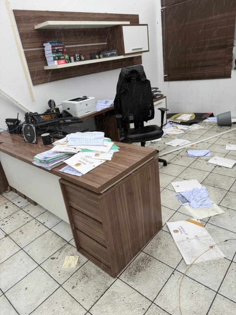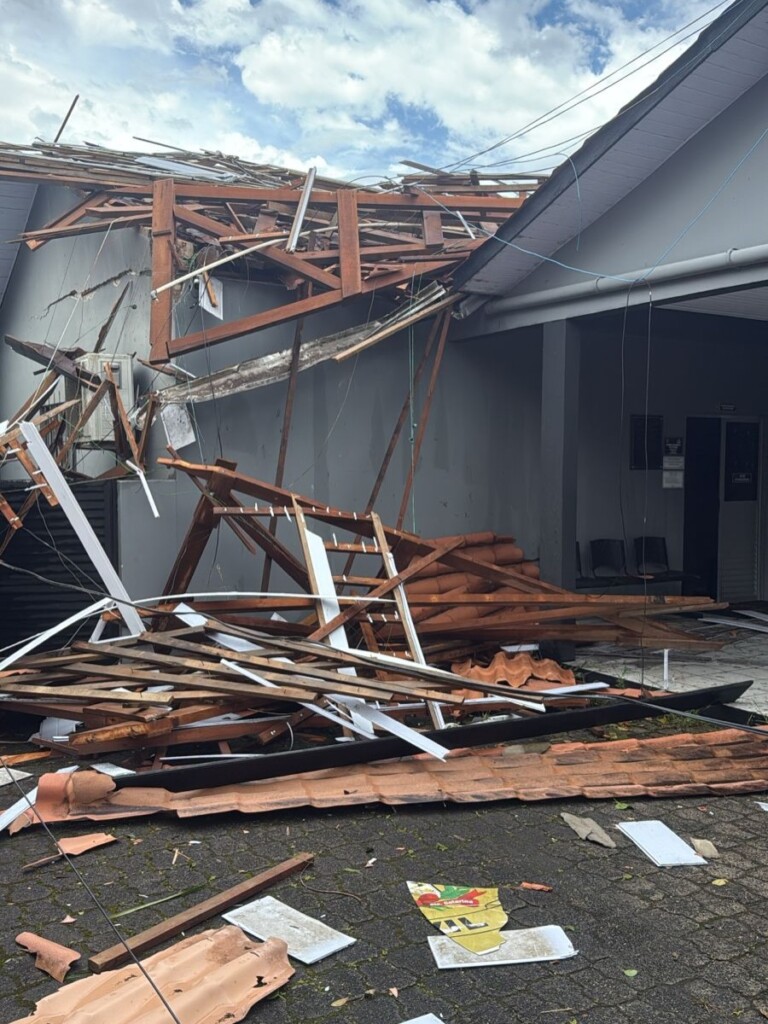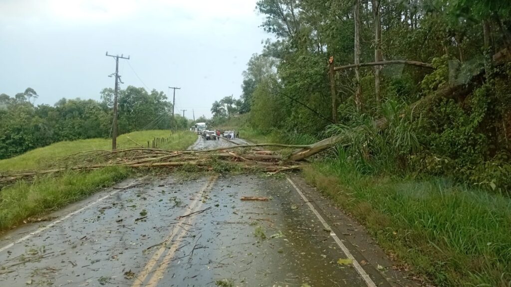 No Sul do Estado, a tempestade também provocou estragos. Em Orleans, parte da estrutura da Delegacia da Polícia Civil foi destruída devido à forte chuva com vento e granizo. Equipes realizam o levantamento dos danos e trabalham na recuperação do prédio. Não há registro de feridos entre os servidores.