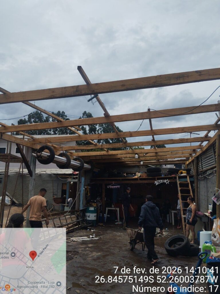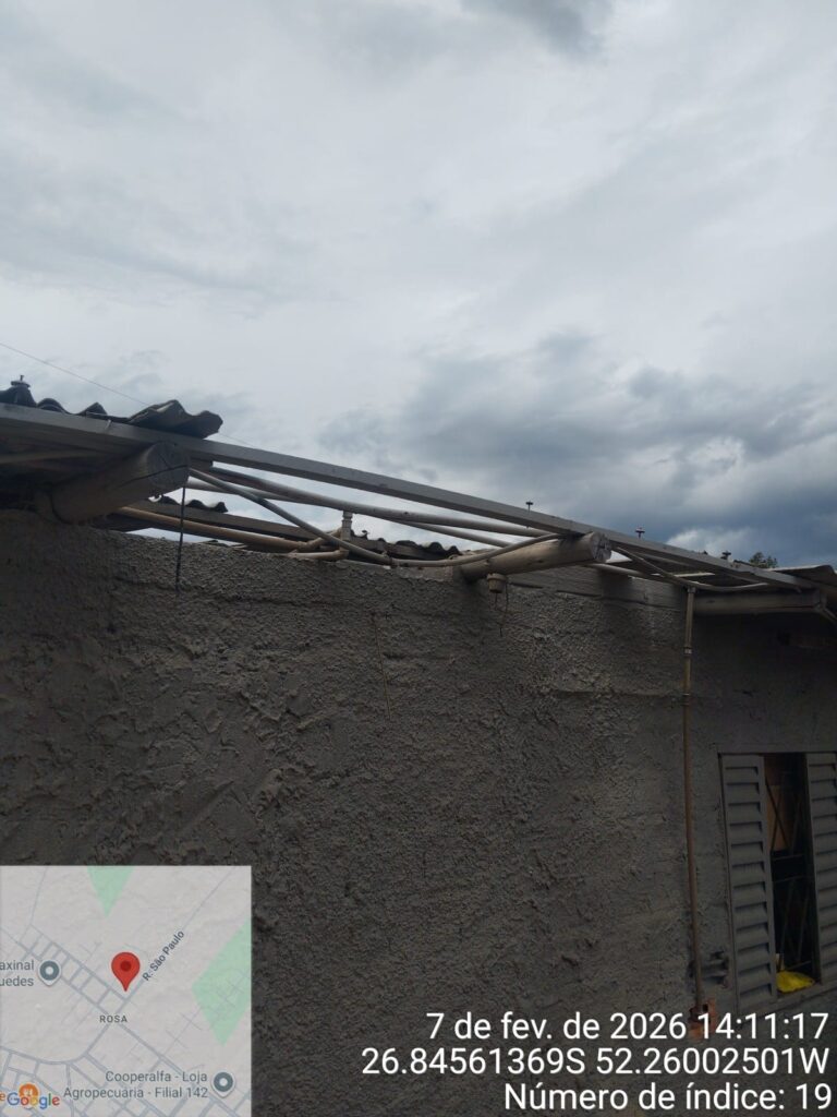 Um temporal com ventos fortes, chuva intensa e queda de granizo atingiu o município de Faxinal dos Guedes, no Oeste de Santa Catarina, na tarde deste sábado (7), provocando alagamentos, enxurradas e danos em residências, além de ocorrências envolvendo a rede de energia elétrica. Uma família ficou desalojada em função dos prejuízos estruturais em sua casa.