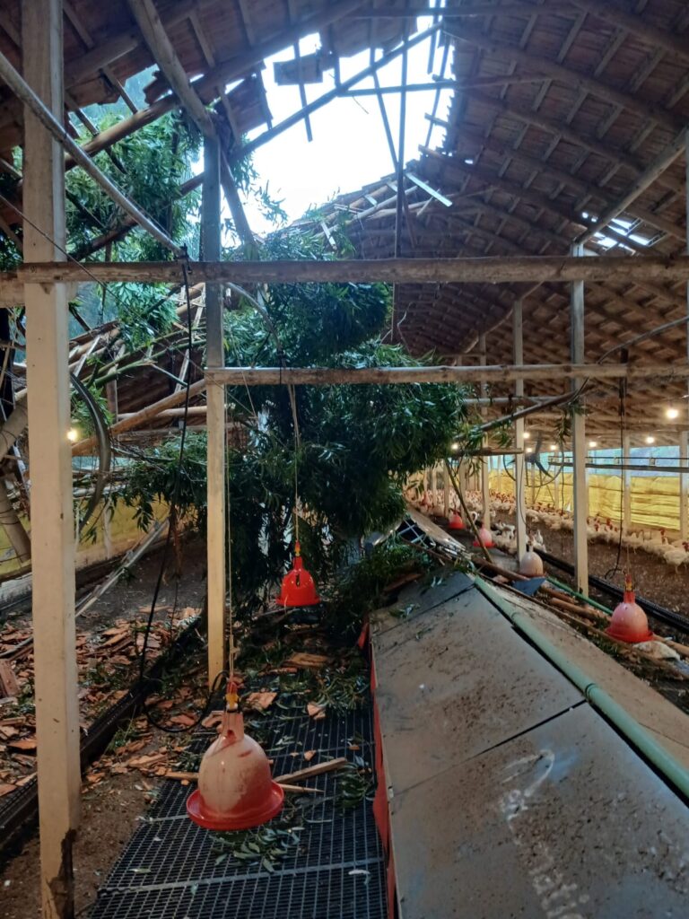 Entre os principais registros estão a queda de uma árvore sobre um aviário e sobre a rede de energia elétrica, pontos de alagamento e entupimento de bueiros em diferentes bairros da cidade. Ao todo, 16 residências tiveram algum tipo de dano. Duas casas foram invadidas pela água e receberam atendimento da Assistência Social, sem necessidade de abertura de abrigos. Uma família precisou deixar a residência por conta dos danos estruturais.