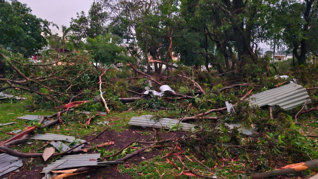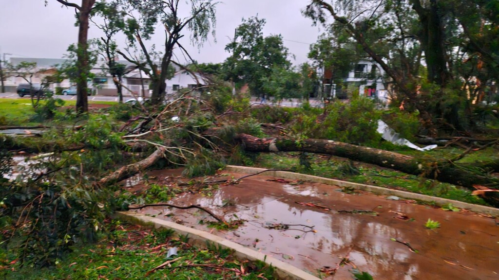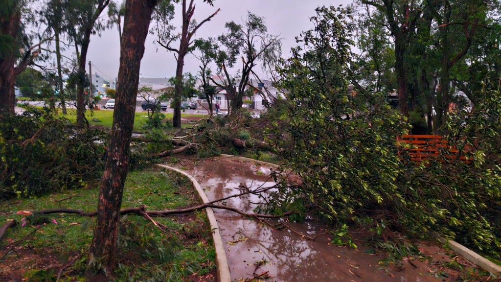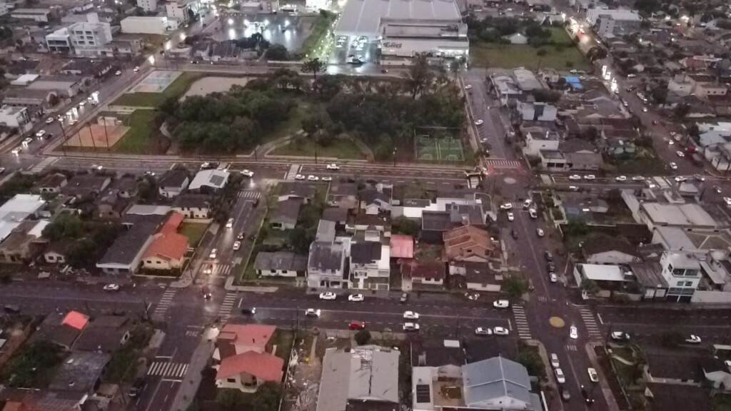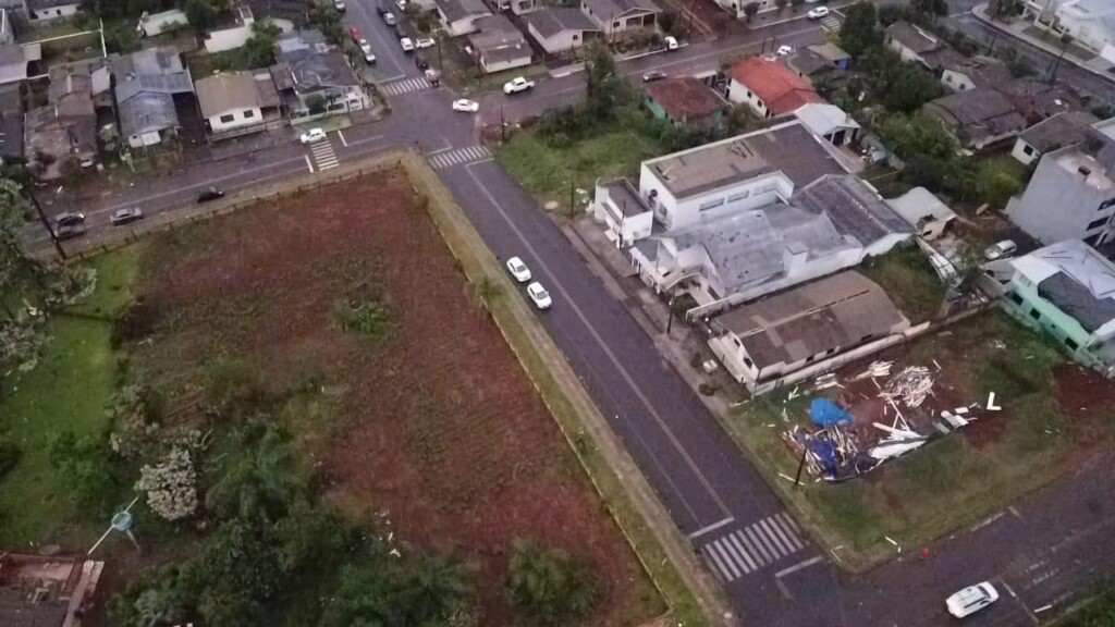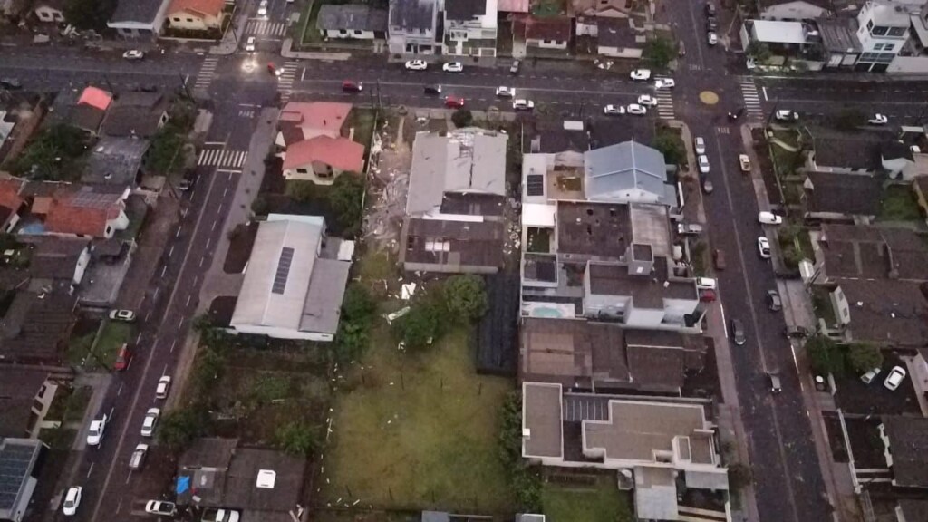 Um vendaval de grandes proporções atingiu Xanxerê por volta das 17h desta sexta-feira (7), provocando destelhamentos, quedas de árvores e postes, além de danos significativos à rede elétrica. Apesar dos prejuízos materiais, não há registro de feridos.