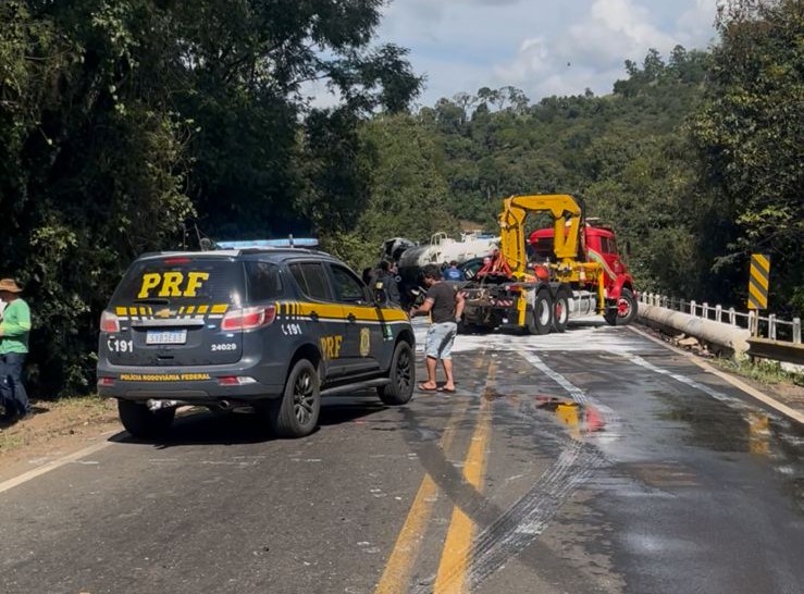 Um grave acidente de trânsito entre um caminhão e uma carreta foi registrado na manhã desta quinta-feira (23), na BR-153, entre os municípios de Concórdia e Irani. A colisão ocorreu sobre a ponte do Rio Jacutinga, nas proximidades da comunidade de Barra Seca.