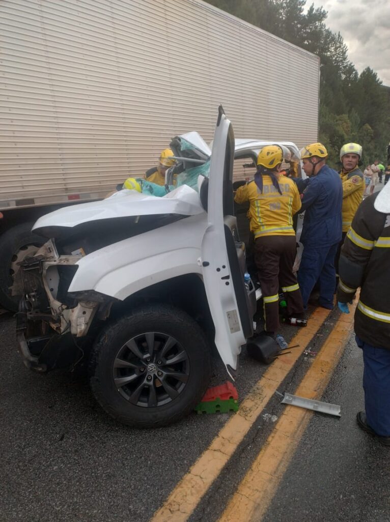 Um grave acidente de trânsito deixou três pessoas mortas no fim da tarde desta terça-feira (17), por volta das 18h, no km 65 da BR-282, em Rancho Queimado. A colisão envolveu uma caminhonete Amarok e um caminhão.