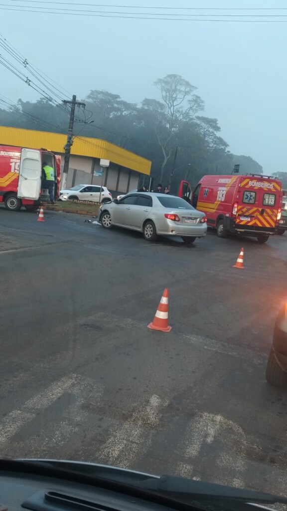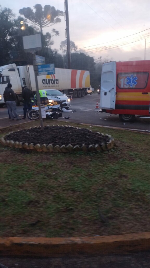 Na manhã desta sexta-feira (12), um acidente envolvendo uma motocicleta e um carro deixou duas pessoas feridas em Chapecó, Santa Catarina. A colisão ocorreu no trevo em direção a Guatambu, quando um veículo Toyota Corolla, que trafegava no sentido Chapecó a Planalto, atravessou a via para se dirigir sentido à Aurora Alimentos.