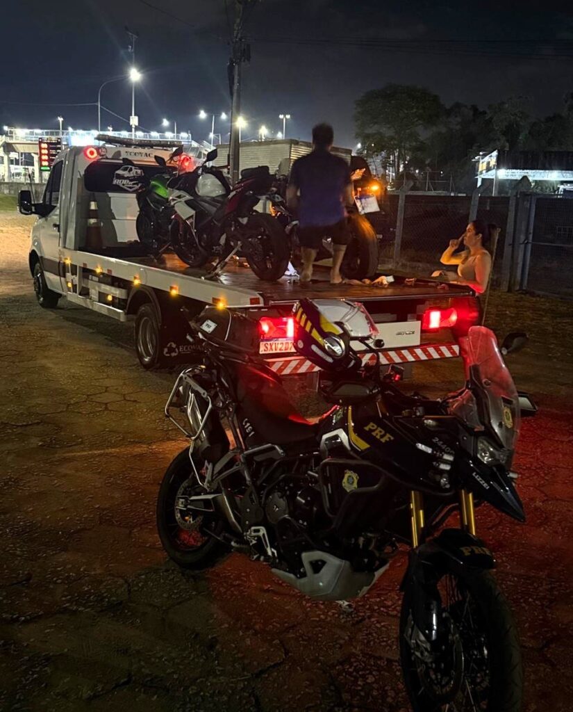 De acordo com a PRF, uma das abordagens flagrou uma motocicleta de 1.000 cilindradas com placa adulterada. O condutor utilizava uma identificação decorativa com o nome do modelo da moto sobreposto à placa original, dificultando a fiscalização. Ele foi conduzido à Delegacia de Polícia e deve responder por adulteração de sinal identificador, crime que prevê pena de três a seis anos de reclusão.