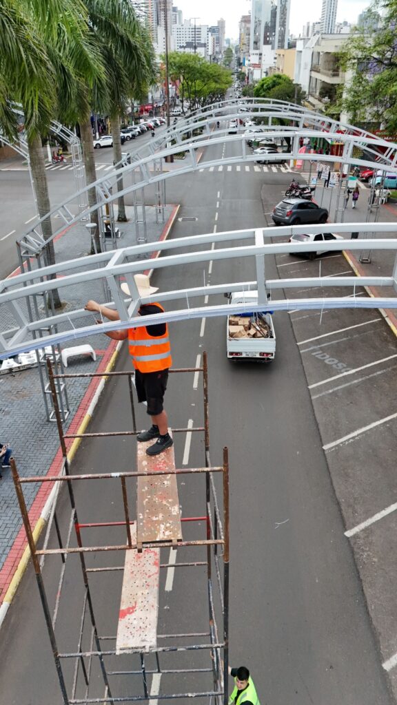 A Prefeitura de Chapecó informa que a Avenida Getúlio Vargas será parcialmente fechada nesta segunda-feira (3), no sentido Sul/Norte, em frente à Praça Coronel Bertaso, para a instalação da decoração natalina nos arcos.