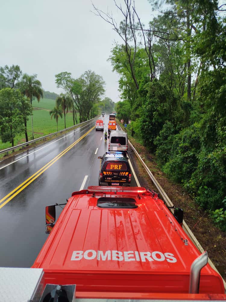 A Polícia Rodoviária Federal (PRF) esteve no local e assumiu os procedimentos legais e o controle da cena do acidente.