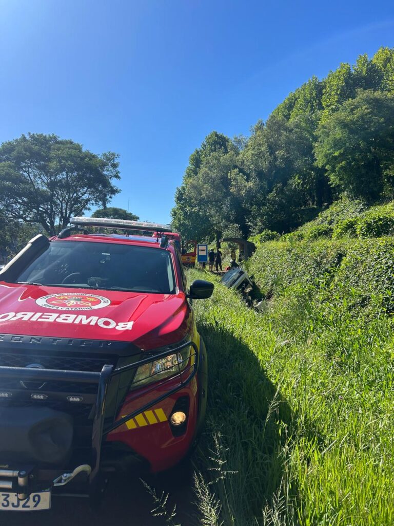 Uma mulher ficou ferida nesta segunda-feira (05) após uma saída de pista seguida de capotamento na BR-282, no município de Erval Velho, no Oeste de Santa Catarina. O acidente ocorreu quando o veículo em que ela estava, um HB20S, capotou, mobilizando equipes do Corpo de Bombeiros Militar de Santa Catarina.