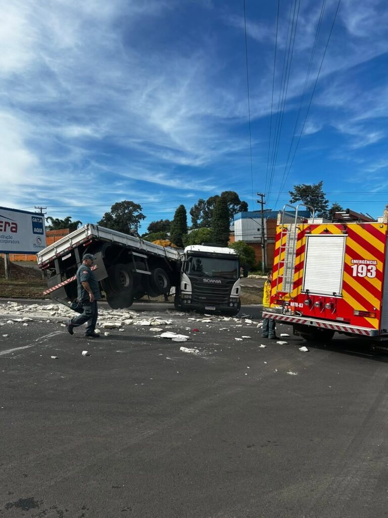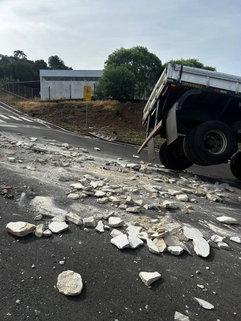 Parte da carga foi derramada sobre a via, exigindo a atuação do Corpo de Bombeiros Militar de Santa Catarina (CBMSC), que realizou a limpeza da pista e auxiliou na liberação do trânsito.