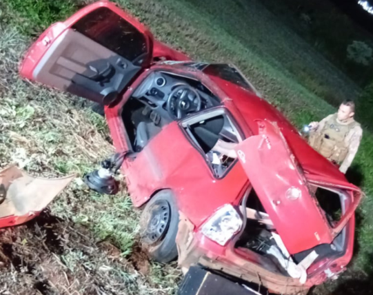 Um grave acidente de trânsito foi registrado nesta quinta-feira (23) na SC-163, em São Miguel do Oeste, no Oeste catarinense. O veículo saiu da pista, capotou e parou em uma lavoura de milho às margens da rodovia.